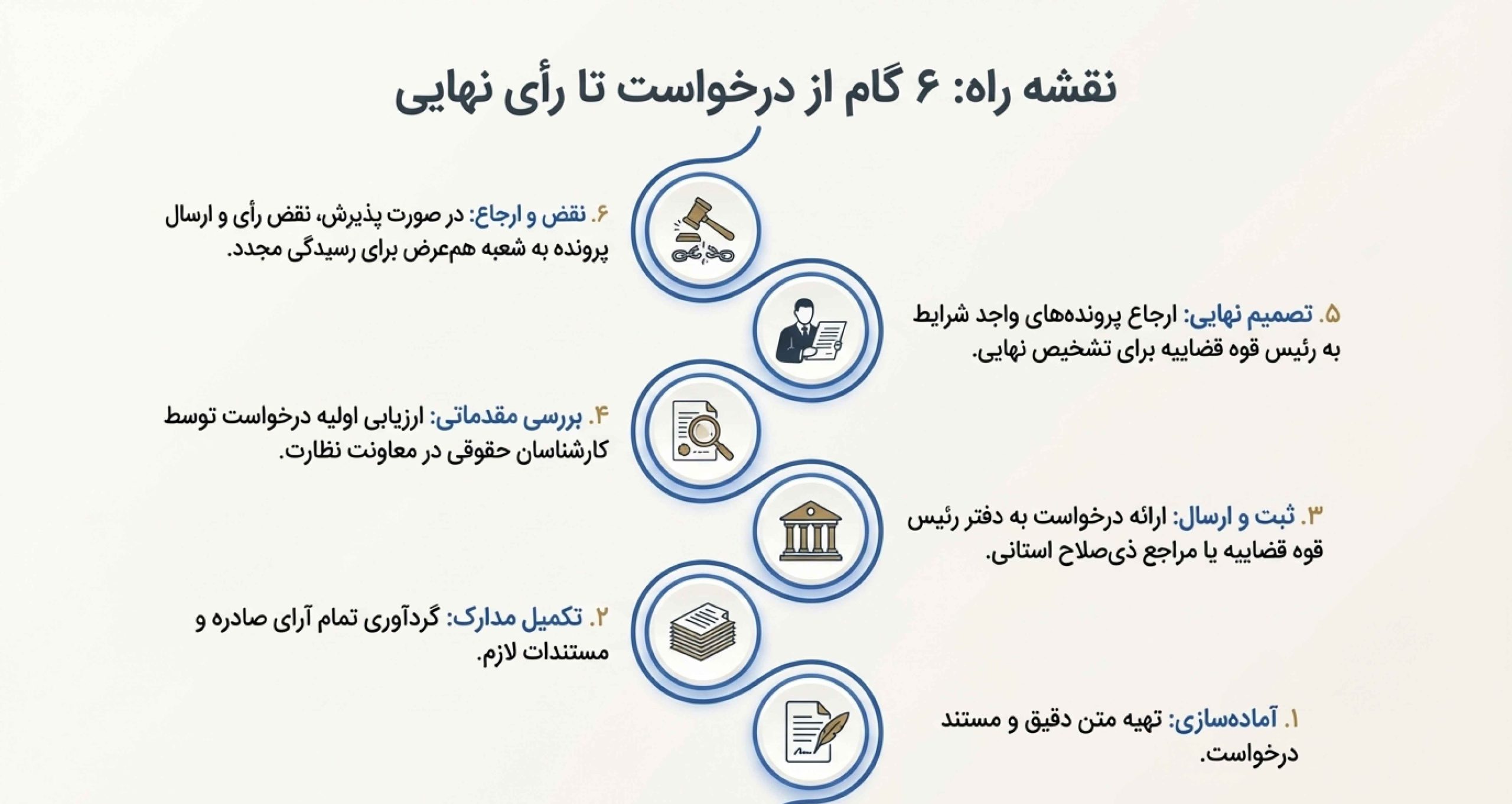 مرحله پنجم: ارجاع برای بررسی به رئیس قوه قضاییه
